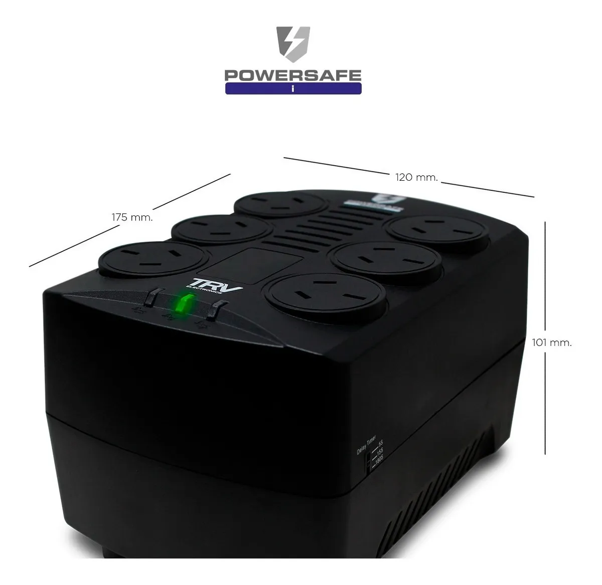 Estabilizador -220v -6 tomas -proteccion sobrecarga/cortocircuito -2x usb estabilizados -rj-11/45 -ideal p/cpu/fuentes 1000w/consolas -black -Trv Powersafe Gamer