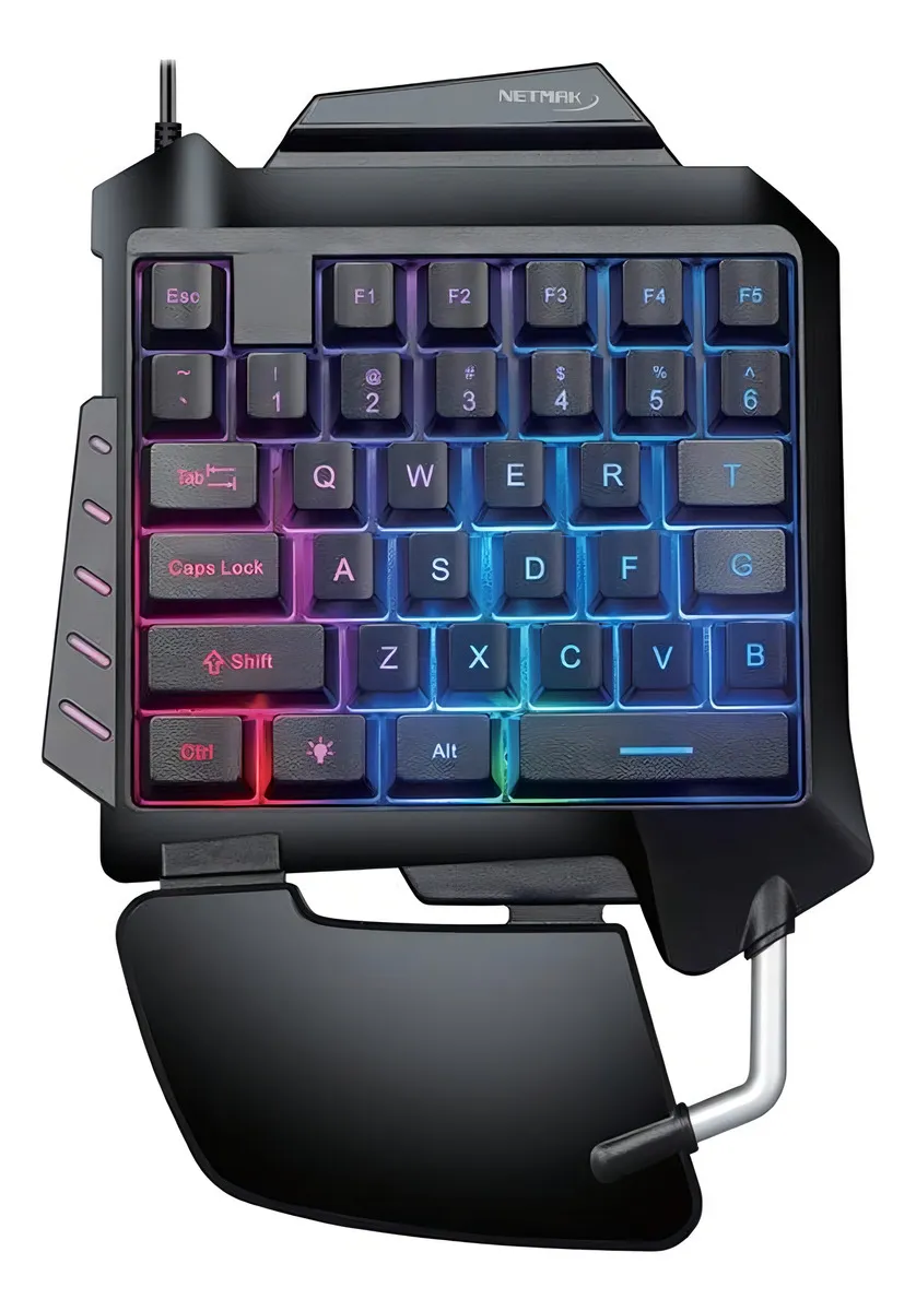 Teclado Gamer Una Mano Luz Rgb Ergonomico NETMAK NM-TACTICAL Color Negro