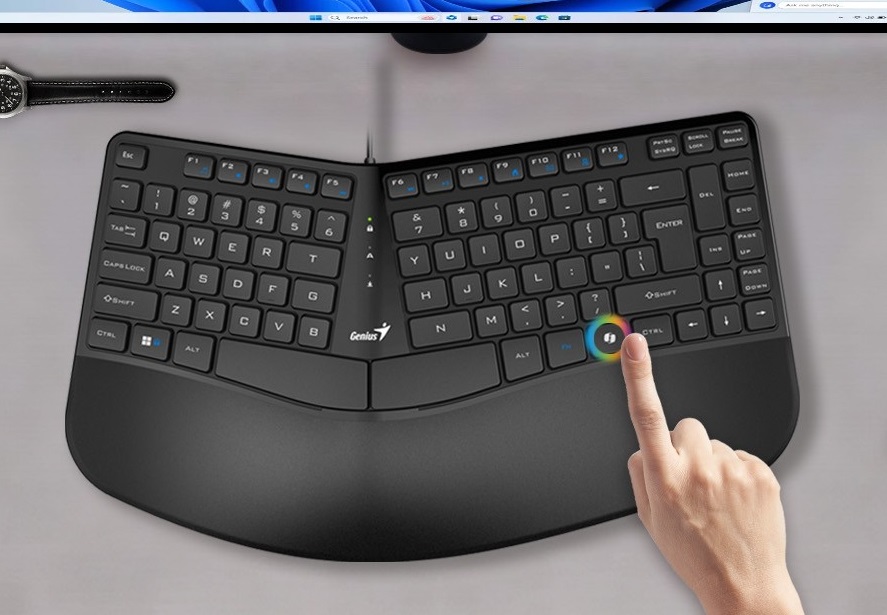 Teclado español -usb -cable 1.5mts -diseño de onda dividida -keycaps antipolvo -Ai Copilot key -ergonomico c/palm rest -black -Genius Ergo KB-700