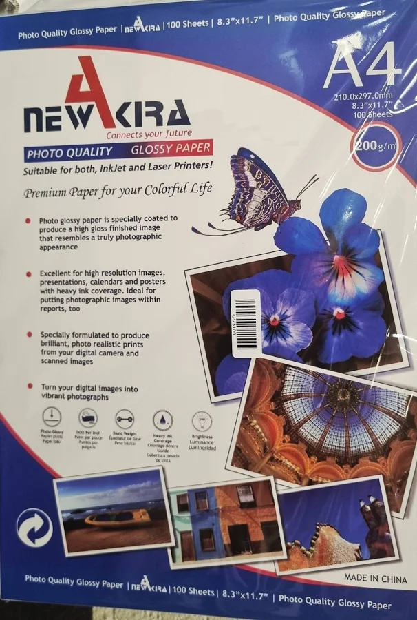 Resma A4 -210x297 -100 hojas -200gr -satinado -NewAkira Glossy Paper (GLOSSY200)